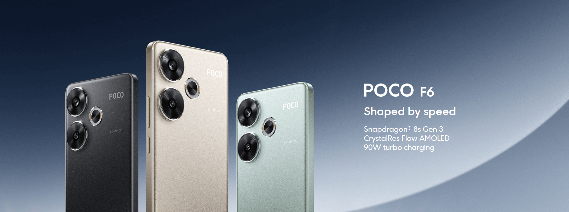 The Poco F6 is available in Black, Green, and Titanium colors.